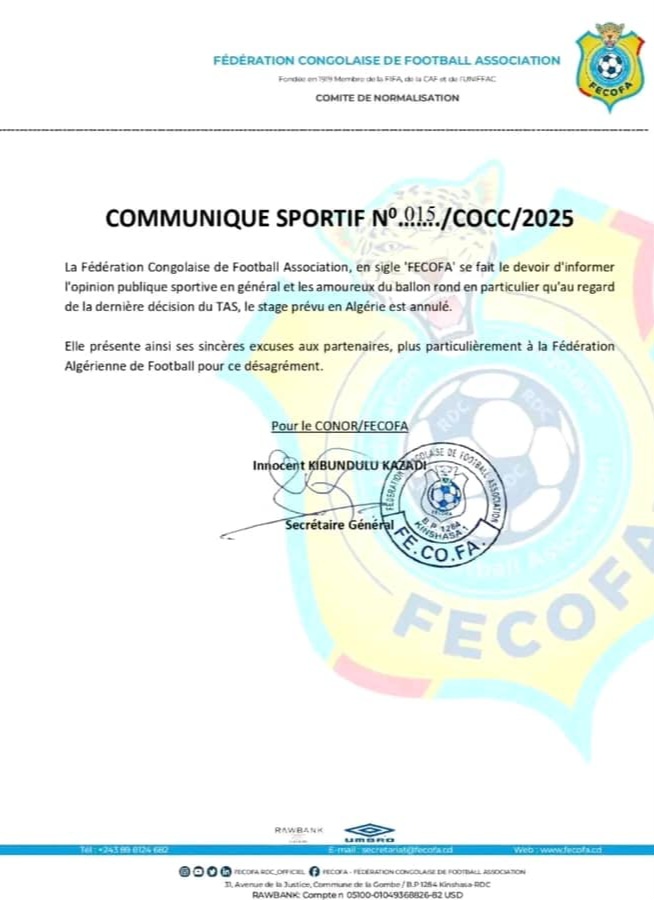 Avec la relance forcée du championnat national, les clubs doivent désormais récupérer leurs joueurs, rendant impossible la poursuite du regroupement en Algérie. Cette situation constitue un revers logistique et sportif pour la sélection congolaise, à deux semaines du coup d’envoi du tournoi continental.