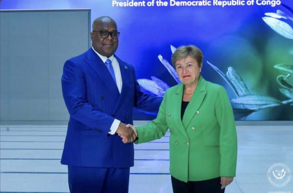 En marge de la signature de l’accord historique de paix entre la RDC et le Rwanda, le Président de la République, Chef de l’État, S.E.M. Félix Antoine Tshisekedi Tshilombo, a eu une importante séance de travail avec la Directrice générale du FMI, Madame Kristalina Georgieva. Accompagné par une délégation de la RDC dans laquelle figurait le Ministre des Finances, S.E.M. Doudou Roussel Fwamba Likunde, le Président de la République et son interlocutrice ont passé en revue l’évolution des deux programmes en cours avec le FMI ainsi que les perspectives d’avenir, en tenant compte de la dynamique de paix à l’issue des accords de Washington.
